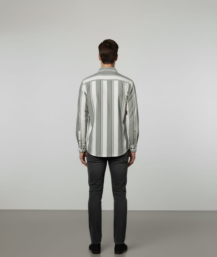 dd a touch of elegance and modern charm to your wardrobe with this Men’s Slim Fit Vertical Striped Shirt. Designed with a smart combination of white and grey stripes, this shirt delivers a clean, sophisticated look that works perfectly for both casual and semi-formal occasions.